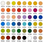 One each of: Cream, Ginger Root, Canary Yellow, Yellowed Orange, Yellow Ochre, Spanish Orange, Goldenrod, Orange, Pale Vermilion, Poppy Red, Carmine Red, Crimson Red, Magenta, Process Red, Mulberry, Pink, Blush Pink, Light Peach, Peach, Lilac, Parma Violet, Violet, Violet Blue, Ultramarine, True Blue, Lt. Cerulean Blue, Peacock Blue, Indigo Blue, Light Aqua, Aquamarine, Chartreuse, Lime Peel, Spring Green, Apple Green, True Green, Grass Green, Olive Green, Dark Green, Light Umber, Burnt Ochre, Sienna Brown, Tuscan Red, Dark Umber, Dark Brown, Black, White, Metallic Silver & Metallic Gold coloring pencils.